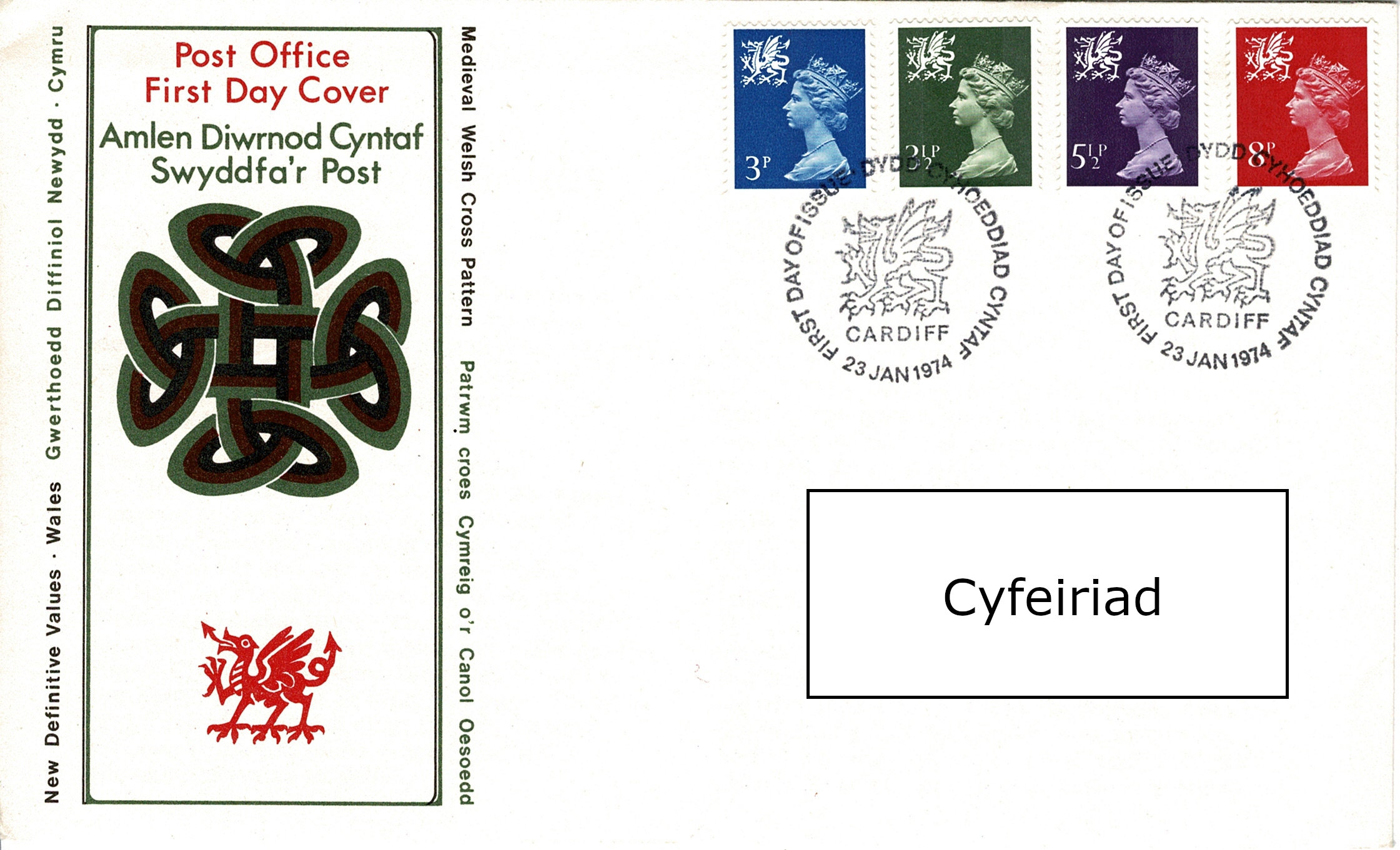 Dros y blynyddoedd mae amrywiaeth o ddigwyddiadau wedi arwain at gyhoeddiad newydd o stampiau, ac Amlen Diwrnod Cyntaf yn sgil hyn. Fel y disgwyl, digwyddiadau brenhinol fel y Juwbilî a phriodasau, ond hefyd cyfresi o stampiau i ddathlu anifeiliaid, ceir, dyfeiswyr, ac adeiladau, fel rheol â chysylltiad ag Ynysoedd Prydain, ond nid pob tro. Unai fel rhan o gyfres, neu fel digwyddiad ar ben ei hun, bydd agwedd o Gymru’n cael ei nodi. Mae nifer wedi bod dros y blynyddoedd.